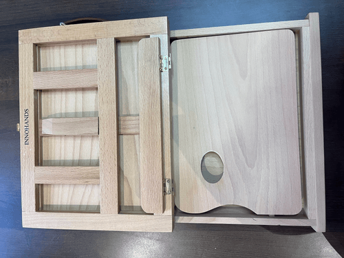 Adjustable & Sturdy Table Easel: Lightweight box easel adjusts to four different angles and accommodates canvas art and prints up to 11" x 14". Includes a wooden painter's palette.