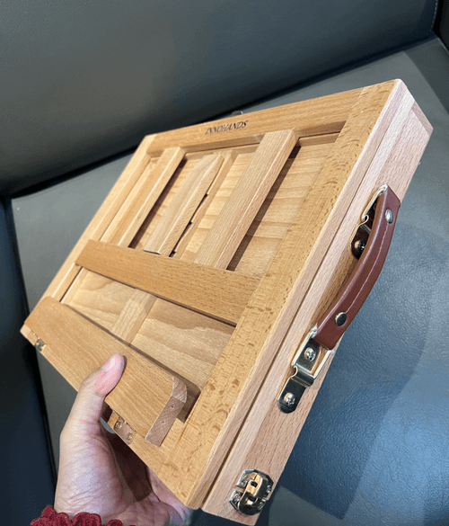 Compact Portable Desktop Easel: Cleverly designed miniature desk that easily converts into a painting easel with a natural oil finish. Crafted from hand-sanded, high-quality aged Beechwood.